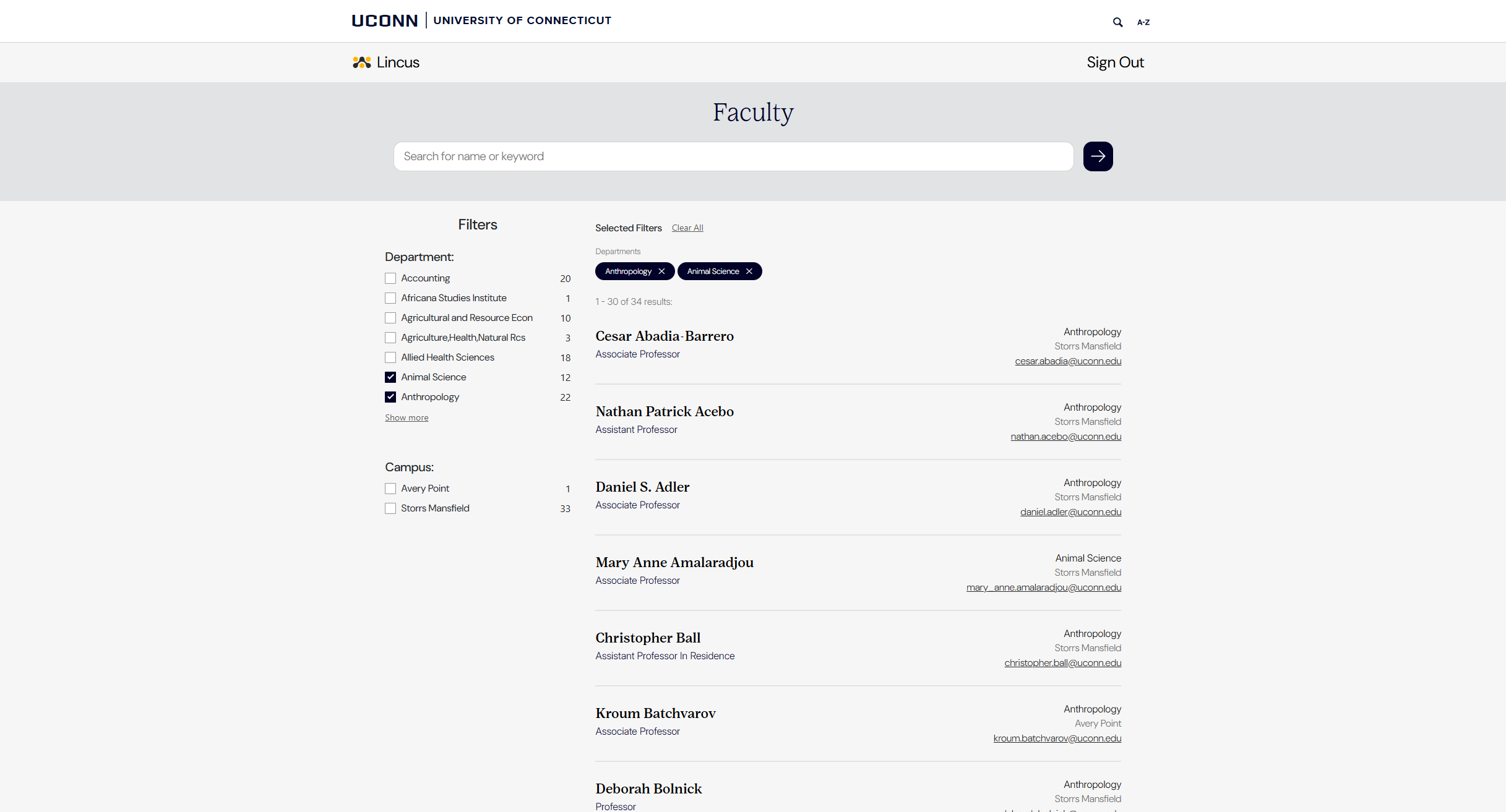 Lincus is a tool for connecting with and learning about different UConn researchers and faculty, mainly focusing on their individual work and grants. I designed and developed the frontend for this project while working closely with the backend developer to decide the best methods to organize the faculty information and pages. For the design itself, I leaned more into a minimalist, professional aesthetic to fit the subject matter of the project.