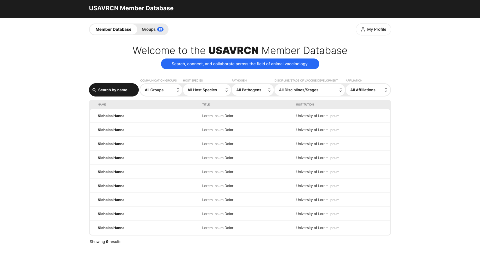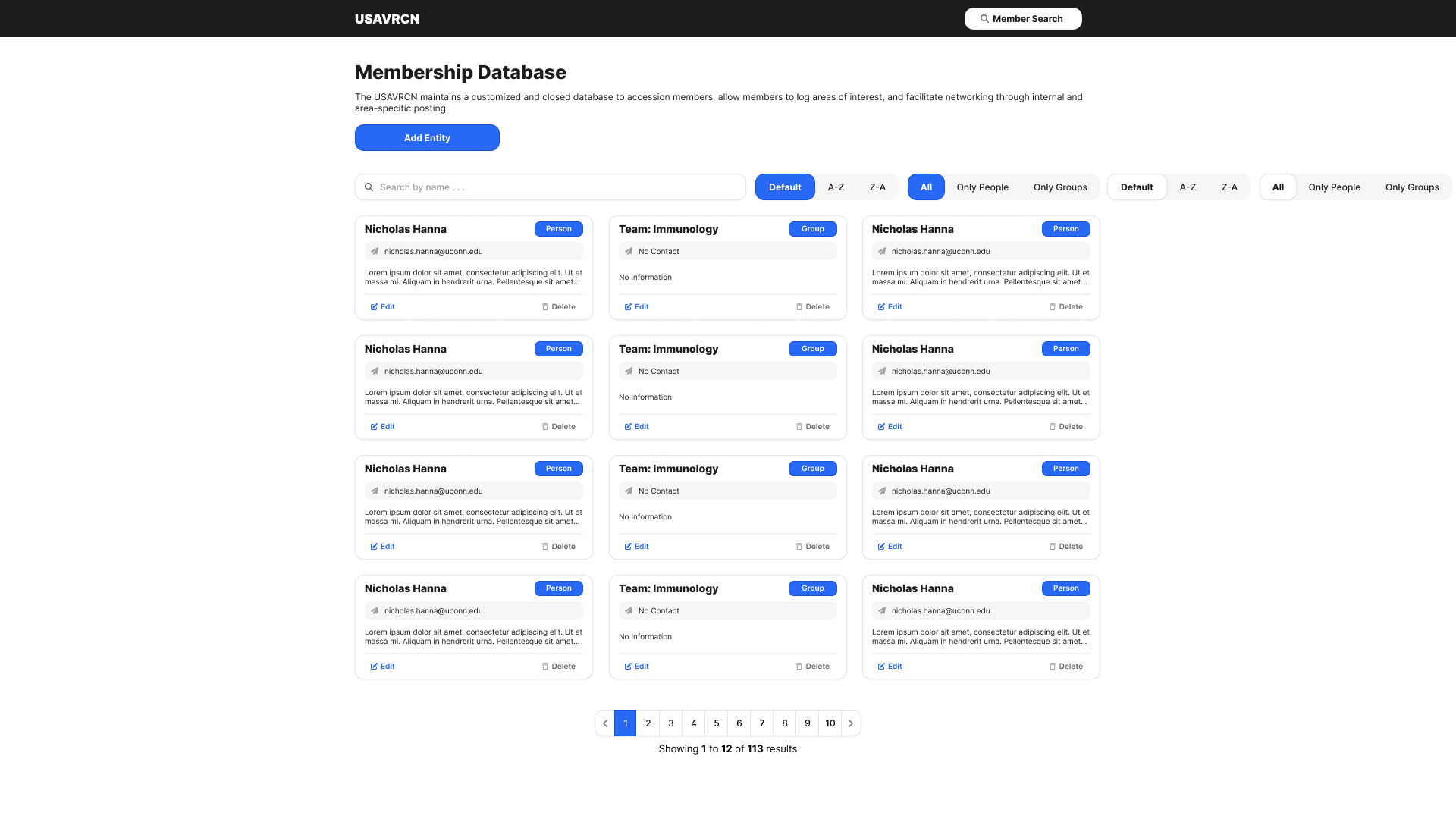 USAVRCN is an animal vaccinology database for which I designed the frontend. This project was meant to be a database where information on experts, researchers, specific vaccines, pathogens, etc. could be found. While the design is mostly modern and simplistic, my effort was mainly spent on the user experience side of this project, as the large amounts of information that needed to be accessible made site organization more complex.