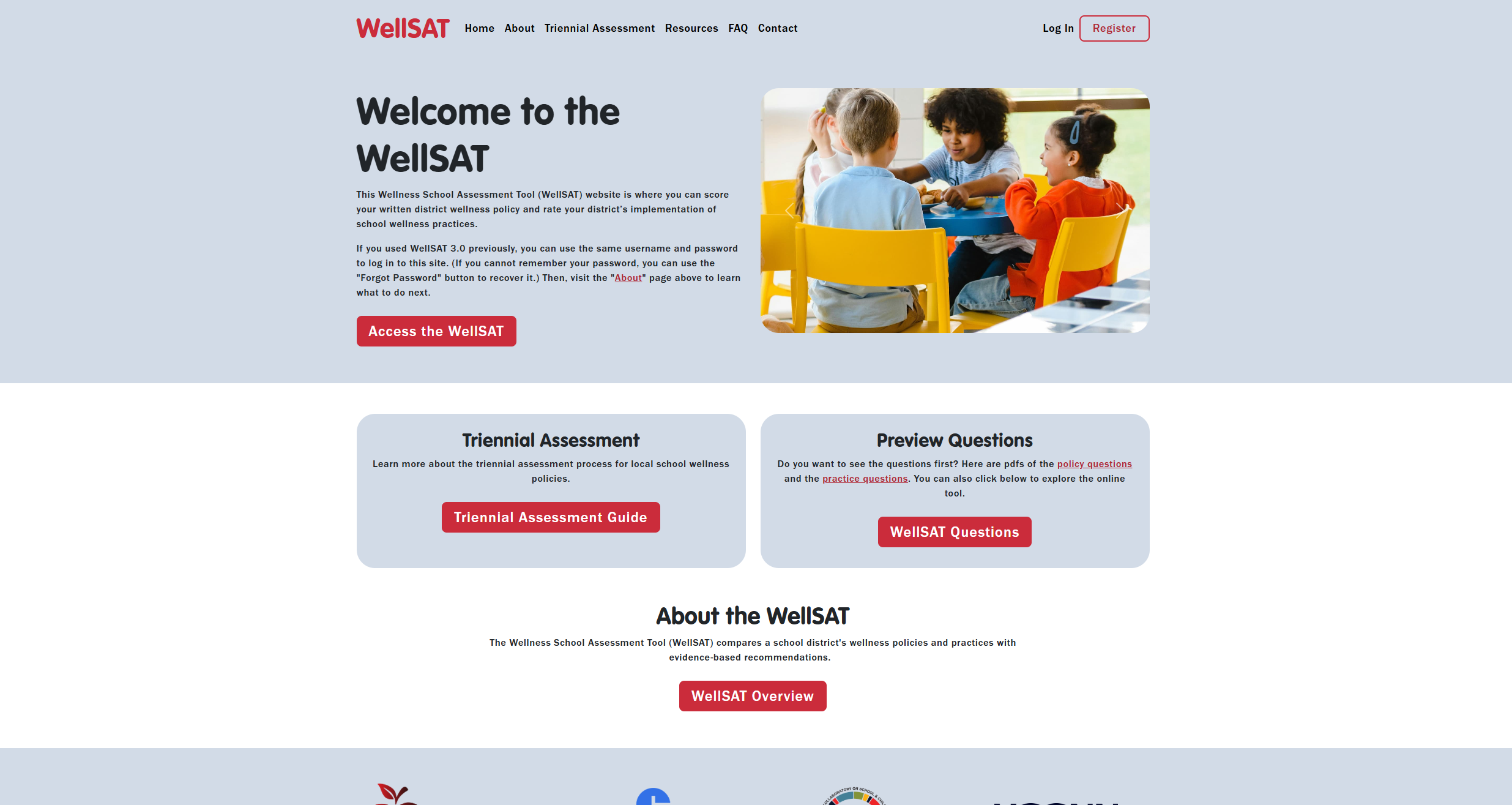 WellSAT, or Wellness School Assessment Tool, is a website focused on helping school districts score and rate their wellness policies and the implementation of their wellness practices. For this project, I designed the site and coded the frontend from scratch, while working closely with their in-house developer who primarily helped migrate old data over from the old site. The main feature of the site is in the actual assessment district managers take in order to score their school’s policies and practices, and this is where the majority of my effort during this project was directed.